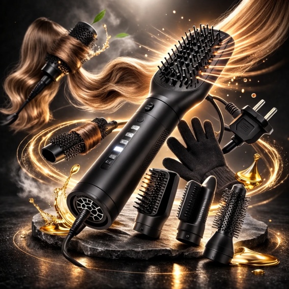 Zapomnij o łazience pełnej osobnych urządzeń. Nasza suszarko-lokówka 5 w 1 to kompletny system stylizacji, który zastąpi Ci tradycyjną suszarkę, lokówkę, prostownicę oraz szczotki modelujące. Dzięki zaawansowanej technologii przepływu powietrza, możesz jednocześnie suszyć i stylizować włosy, oszczędzając czas i chroniąc ich strukturę przed nadmiernym przegrzaniem.
