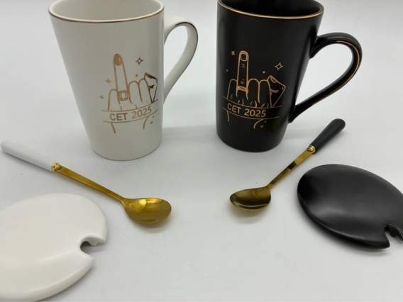 Unikalny Design: Odważny, złoty motyw graficzny dodaje charakteru i wywołuje uśmiech przy każdej porannej kawie.